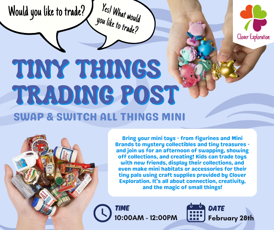 Children will begin by setting up their own mini “shops,” where they can trade tiny treasures with peers in a guided, supportive environment. Through trading, children naturally practice communication, negotiation, empathy, and decision-making; all at their own pace!