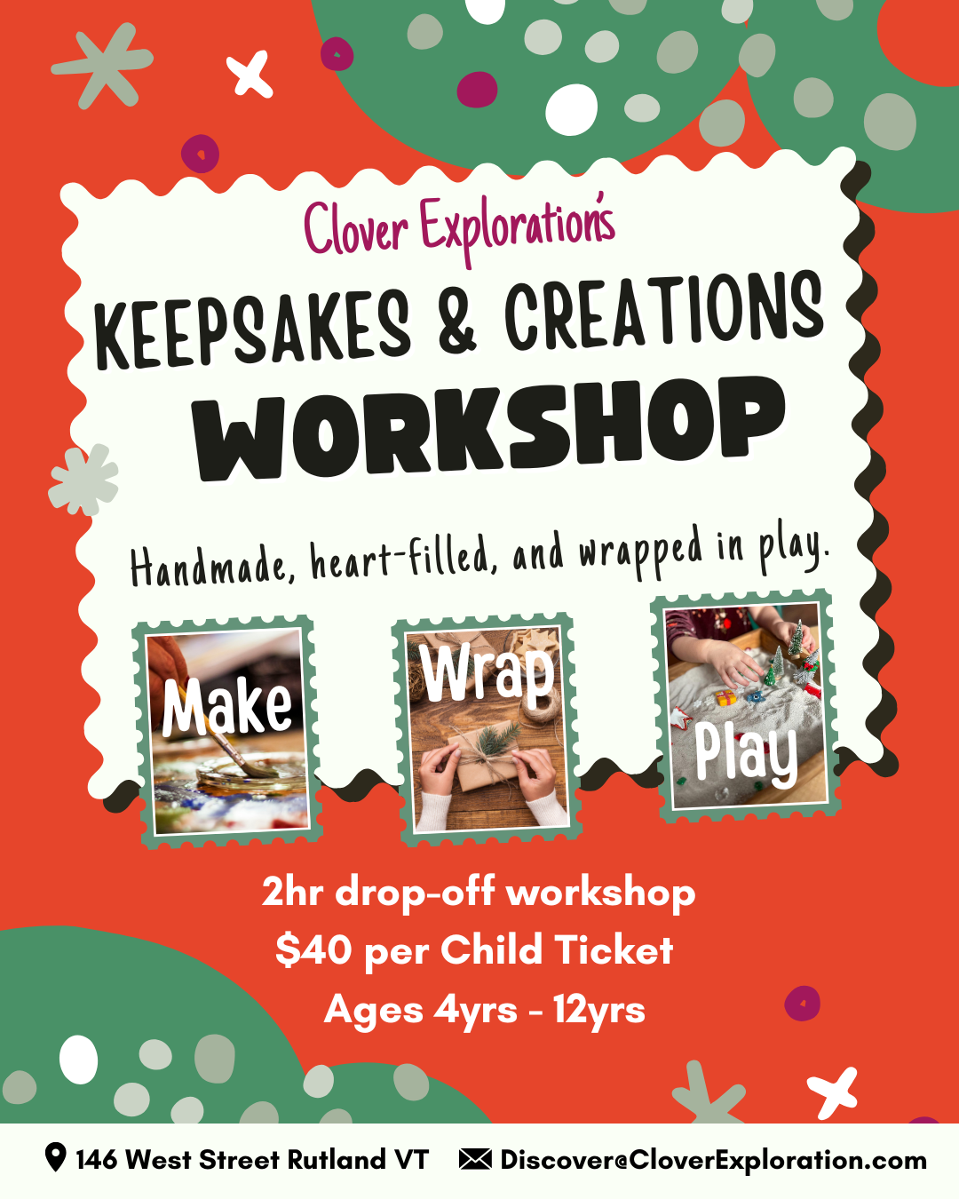 Cost: $40 per child (includes all materials, keepsakes, playtime, and photos!)